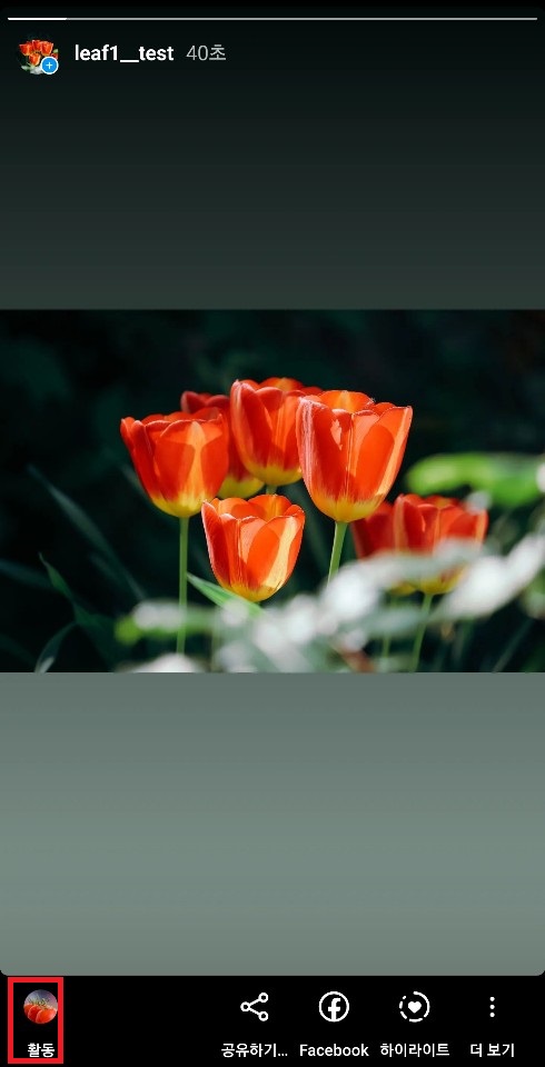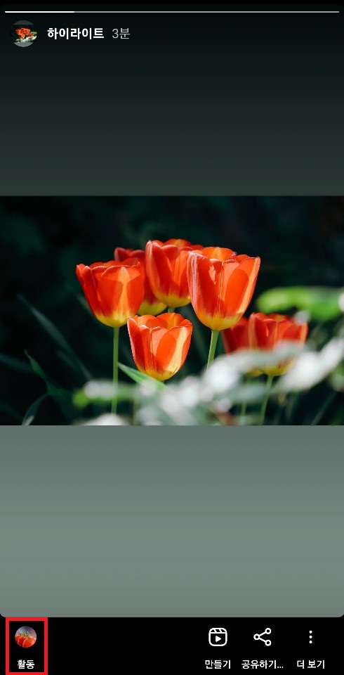 ✓ 본인의 스토리를 눌러주시게 되면, 화면 왼쪽 하단에 활동이라는 문구가 나타나게 되는데요, 이 문구를 눌러주시게 되면, 누가 읽었는지에 대한 정보가 나타납니다.