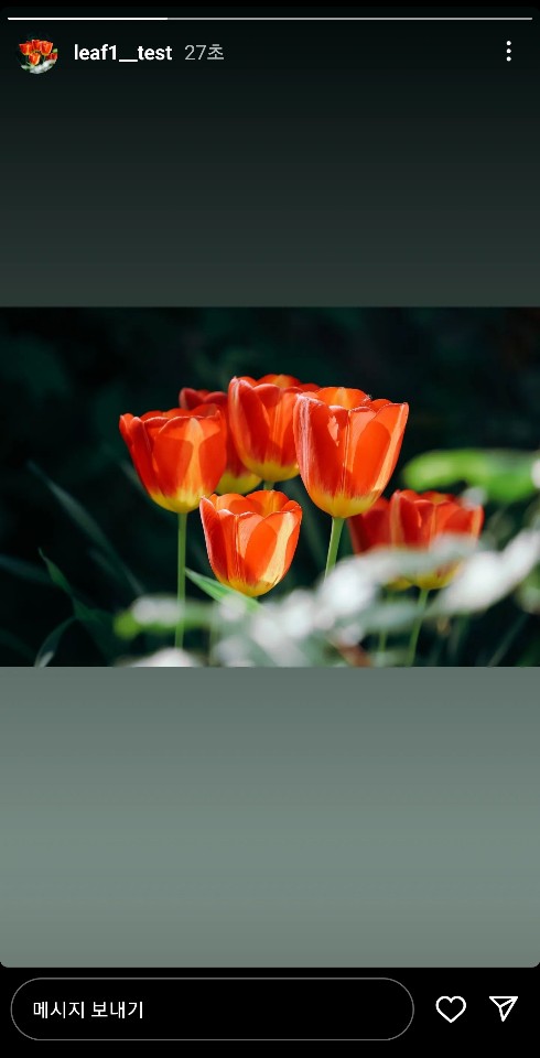 ✓ 상대방의 스토리를 눌러주시면, 위와 같이 상대방이 올린 스토리를 보실 수 있고, 스토리에 대한 메시지나 좋아요 표시 등을 전달할 수 있습니다.