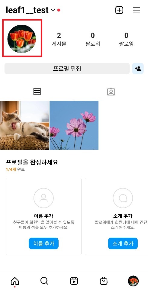 ✓ 인스타 스토리가 작성되면, 본인의 인스타그램 피드에 빨간색 테두리가 쳐지면서, 인스타 스토리가 게시되는데요, 본인은 물론, 본인을 팔로우한 다른 사람에게 보이게 됩니다.