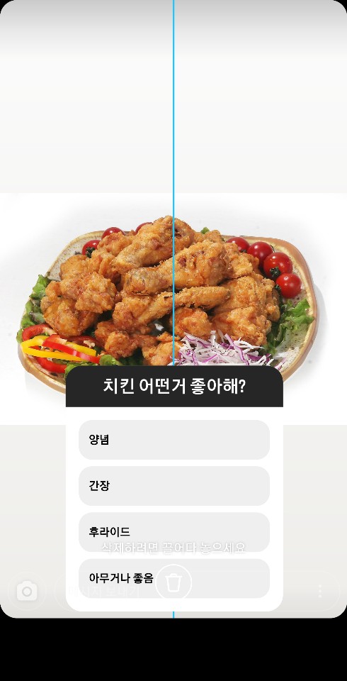 ✓ 위와 같이 최소 2개에서 최대 4개까지 답변을 입력하신 뒤, 뒤에 보이시는 사진이 잘 나오도록 투표 항목을 옮겨주시면 됩니다.