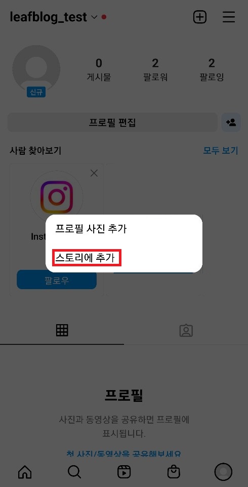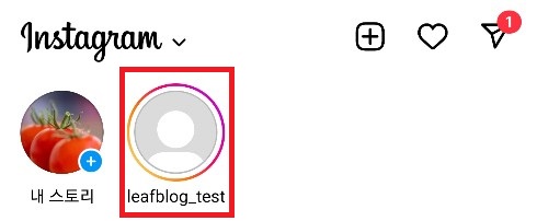 ✓ 공개 범위를 설정하시고 스토리에 공유하시게 되면, 위와 같이 정상적으로 스토리가 작성된 것을 알 수 있습니다. 이제 이 스토리를, 다른 계정으로 보도록 하겠습니다.