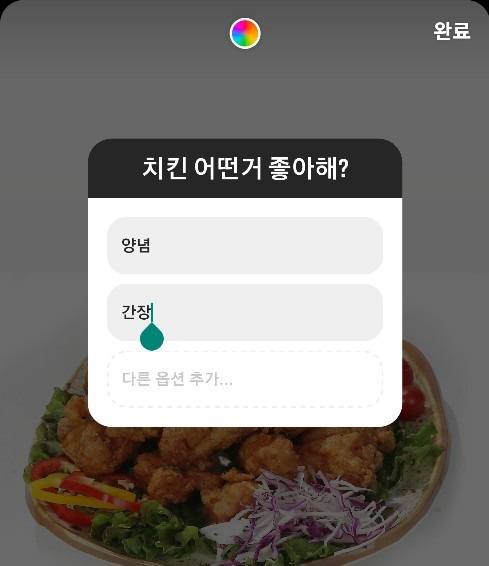 [2] 스토리를 작성하는 과정에서, 투표 스티커를 만들고, 그 안에서 투표와 관련된 설정을 하셔야 합니다.