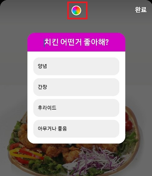 ✓ 그리고, 투표 질문의 색상을 변경하기 위해서는, 투표를 선택하신 뒤, 상단에 보이시는 물감 아이콘을 눌러주시면 됩니다.