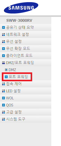 ✓ 그러면 다양한 공유기 설정 메뉴가 나타나게 되는데요, 여기서 왼쪽에 보이시는, 포트 포워딩을 찾아 들어와 주시면 됩니다.