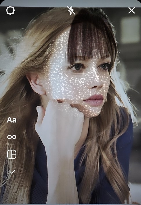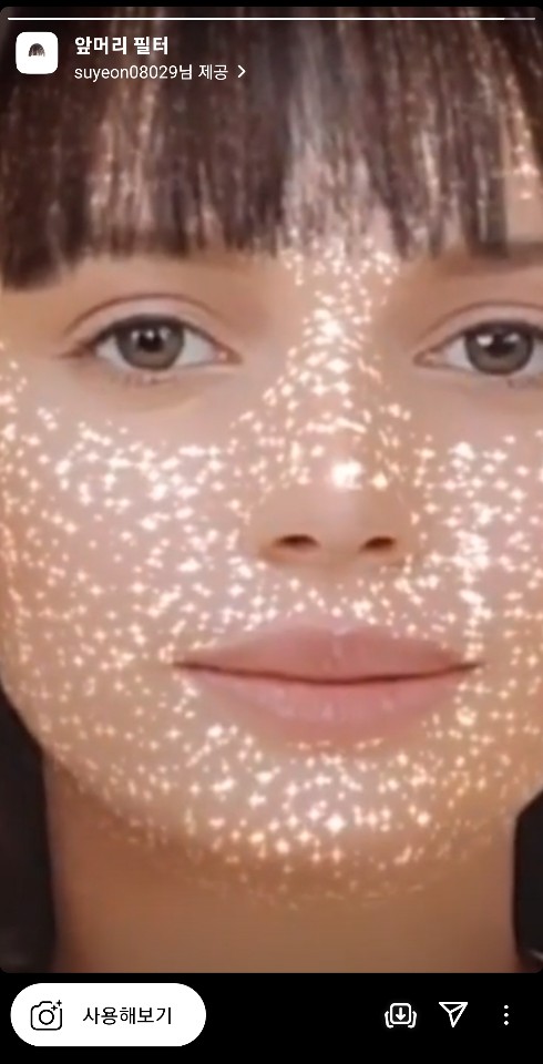 ✓ 위와 같이, 앞 머리 필터와 반짝이 필터 또한, 셀카나 후면 카메라를 이용하여, 얼굴에 갖다 대면, 자동으로 필터가 적용됩니다.
