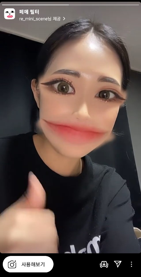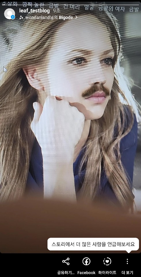 ✓ 위와 같이, 콧수염 필터를 적용한 뒤, 아래 스토리 공유 버튼을 눌러, 공유를 하게 되면, 정상적으로 본인의 스토리에 올라가게 됩니다.