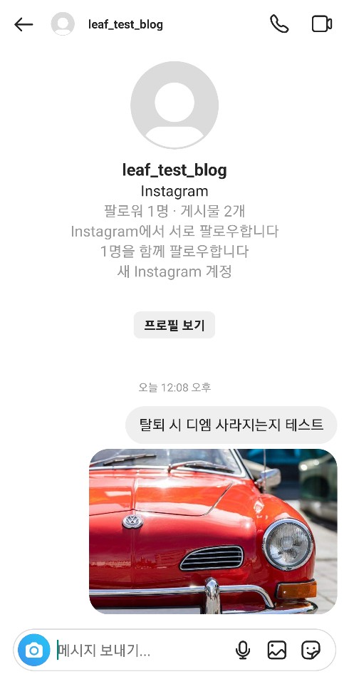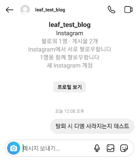 ✓ 탈퇴를 하게 되면, 그 즉시 인스타그램에서 로그아웃되는데요, 이제 본인이 보냈던 디엠, 사진, 동영상, 스토리 등이 어떻게 보이는지 확인해보도록 하겠습니다.