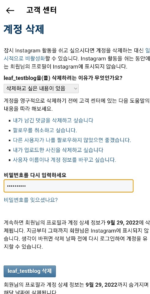 인스타 탈퇴 후