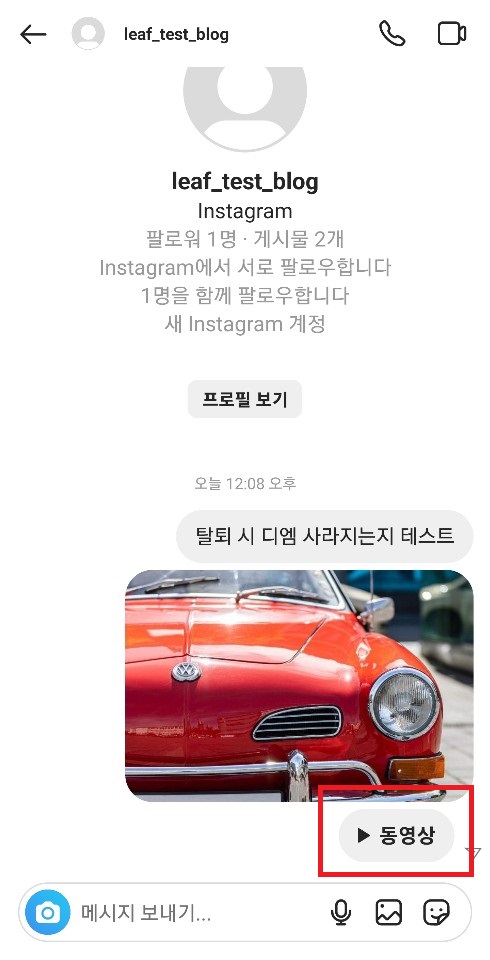 ✓ 만일, 위 디엠을 누르게 되면, 정상적으로 사진이나 메시지는 나타나게 되지만, 클릭해야만 볼 수 있는 동영상이나 스토리는 볼 수 없다는 것을 알 수 있었습니다.
