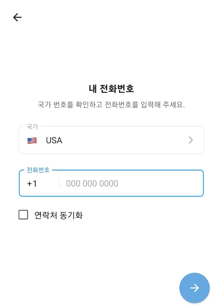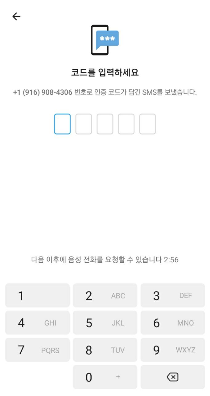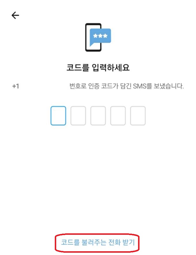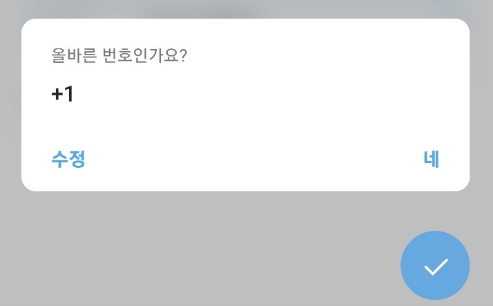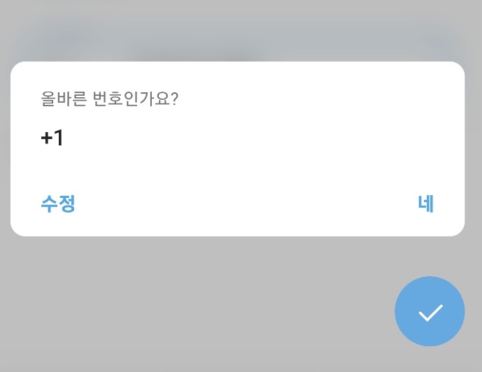 위와 같이, 국가번호를 +1로 설정하시고, 토크앳원으로 받았던 가상번호 10자리를 입력하신 뒤, 화살표 버튼을 눌러주시면 됩니다.