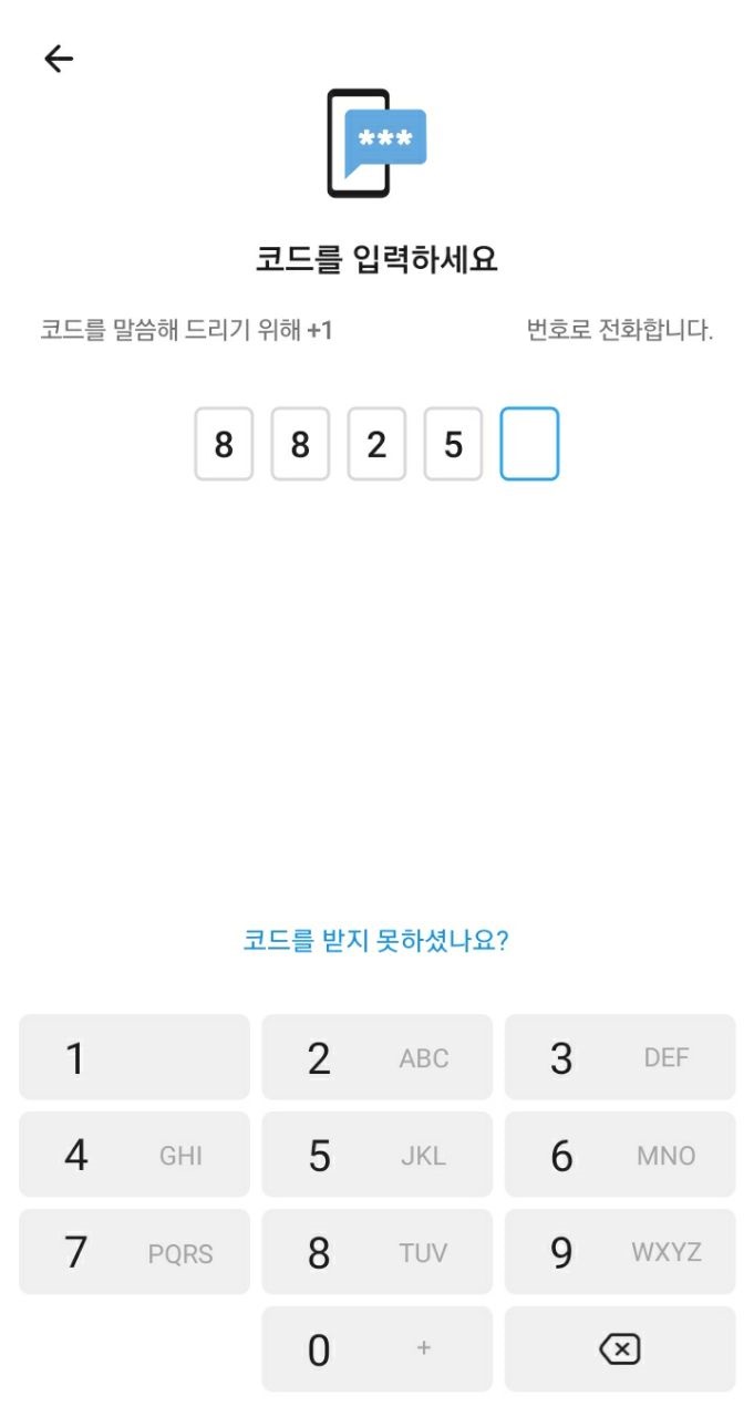 위와 같이, 국가번호를 +1로 설정하시고, 토크앳원으로 받았던 가상번호 10자리를 입력하신 뒤, 화살표 버튼을 눌러주시면 됩니다.