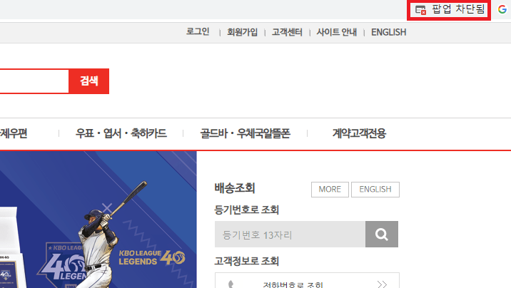 ✓ 위와 같이, 특정 사이트의 팝업을 차단하게 되면, 주소창 옆에 팝업 차단됨이라는 문구와 함께 팝업이 나타나지 않습니다.