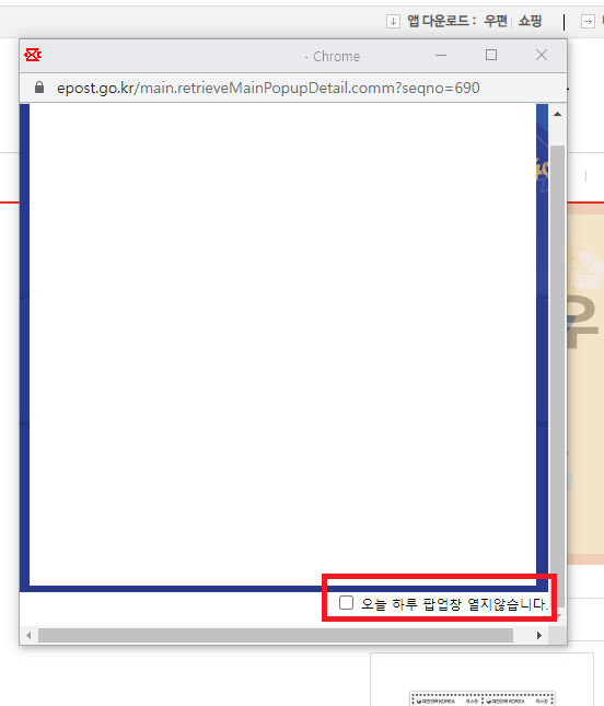 ✓ 팝업창 대부분은 아래 팝업창을 특정 기간 열지 않도록 하는 기능이 있는데요, 이 기능을 눌러보았습니다.