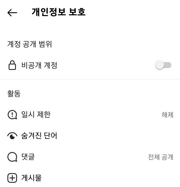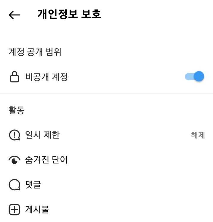 ✓ 마지막으로 계정 공개 범위 아래 있는, 비공개 계정이라는 항목을 활성화하여, 비공개 계정으로 전환해주시면 됩니다.