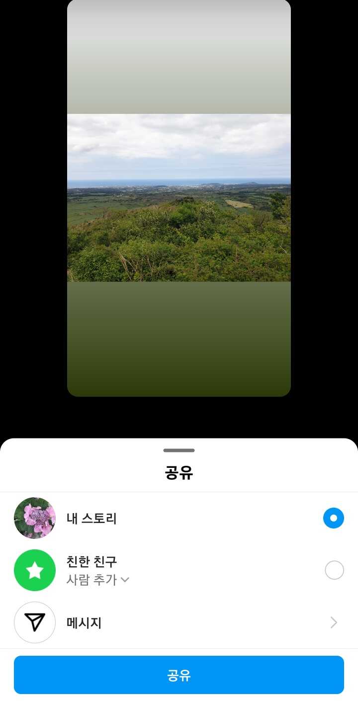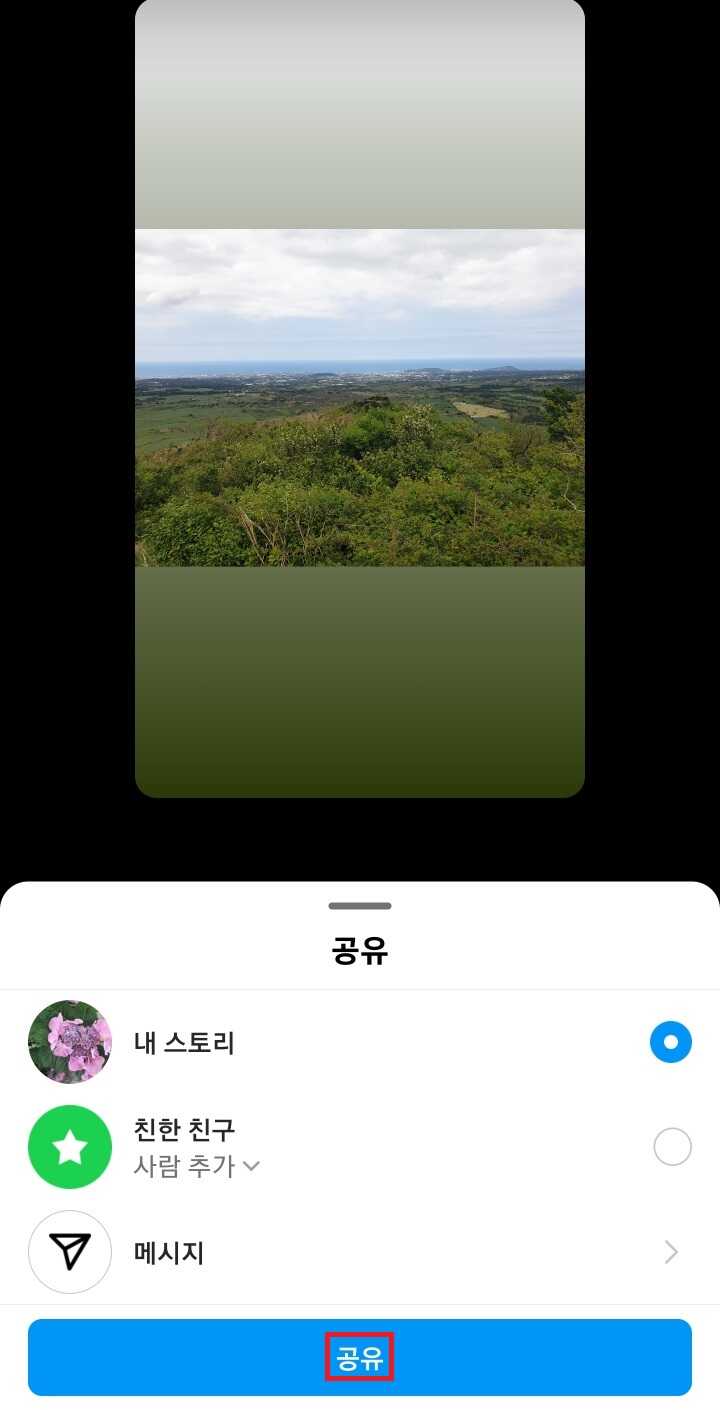 ✓ 위와 같이, 적당한 사진 하나를 골라, 내 스토리에 공유해보도록 하겠습니다.