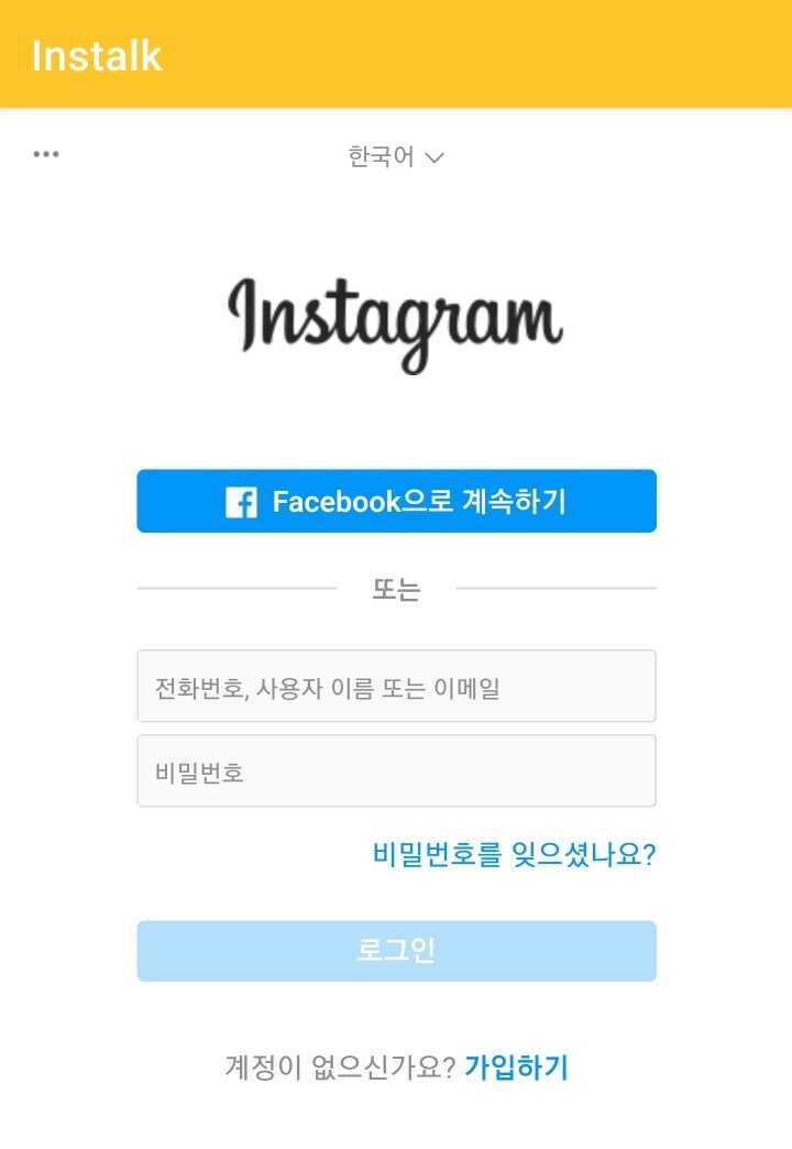 ✓ 이 앱을 실행하신 뒤, 중간에 나타나는 로그인 항목을 눌러, 본인의 인스타그램 아이디와 비밀번호를 입력해줍니다.