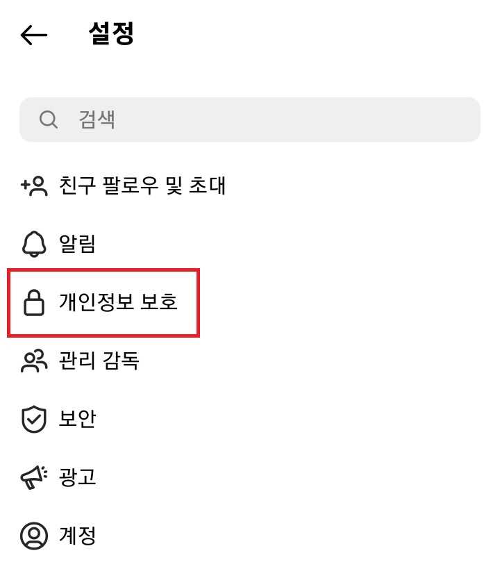 ✓ 그런 다음, 설정에 들어가, 개인정보 보호라는 메뉴를 눌러 들어가주시면 됩니다.