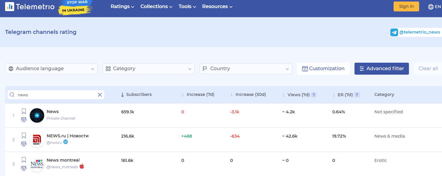 Here you can find all channels that you need with a flexible filter.