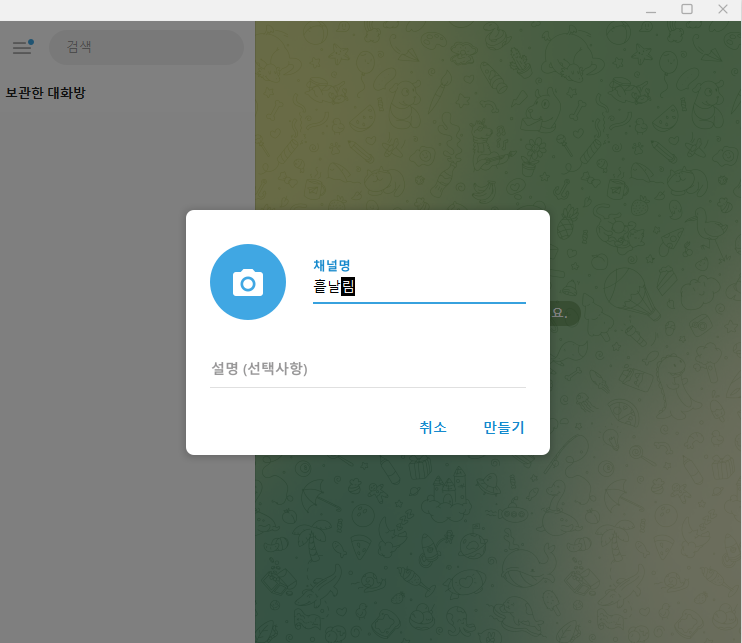공개 채널을 만들기 위해, 채널 만들기를 눌러주신 뒤, 채널명과 설명을 입력하고, 아래 만들기 버튼을 눌러보았습니다.