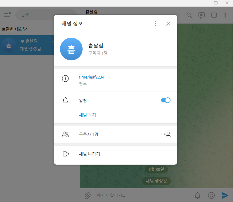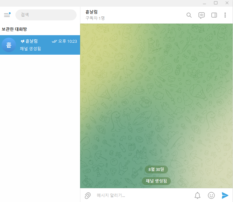 그러면 정상적으로 텔레그램 채널이 만들어지게 되는데요, 이러한 채널을 검색해 보도록 하겠습니다.