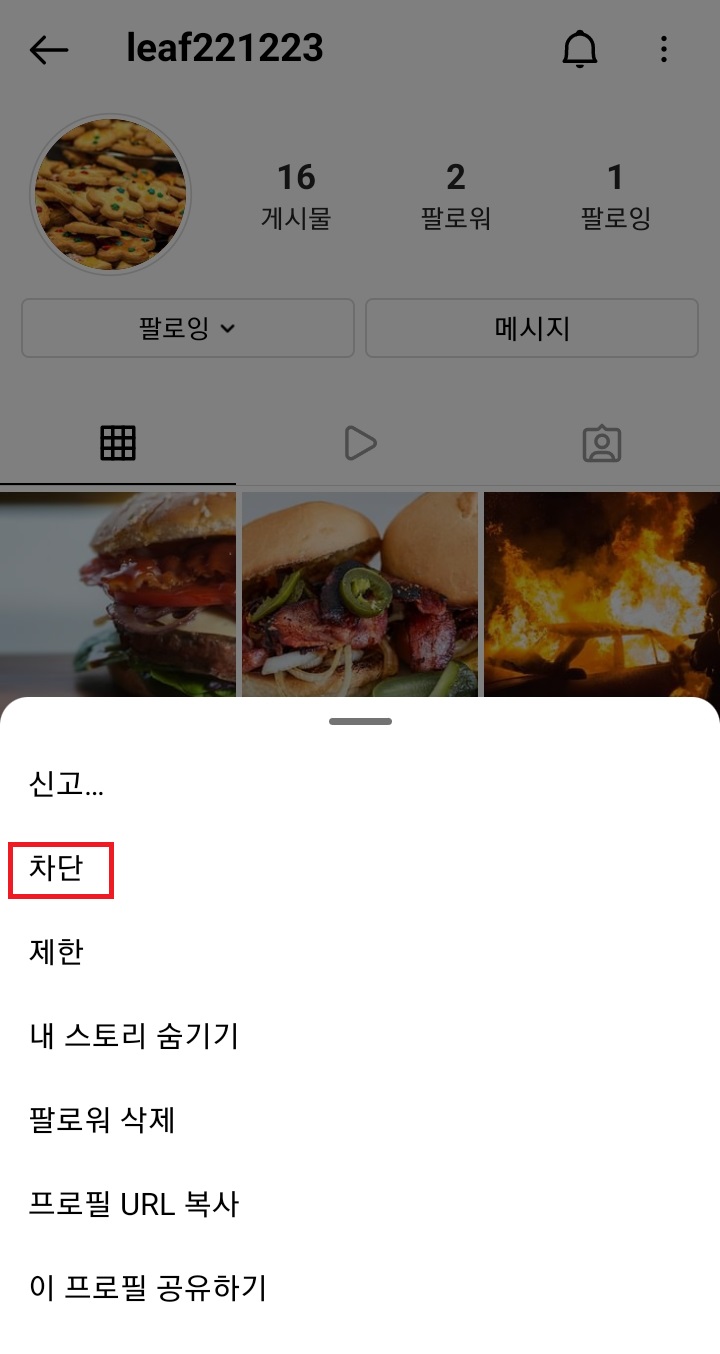 상대방의 인스타 계정 차단