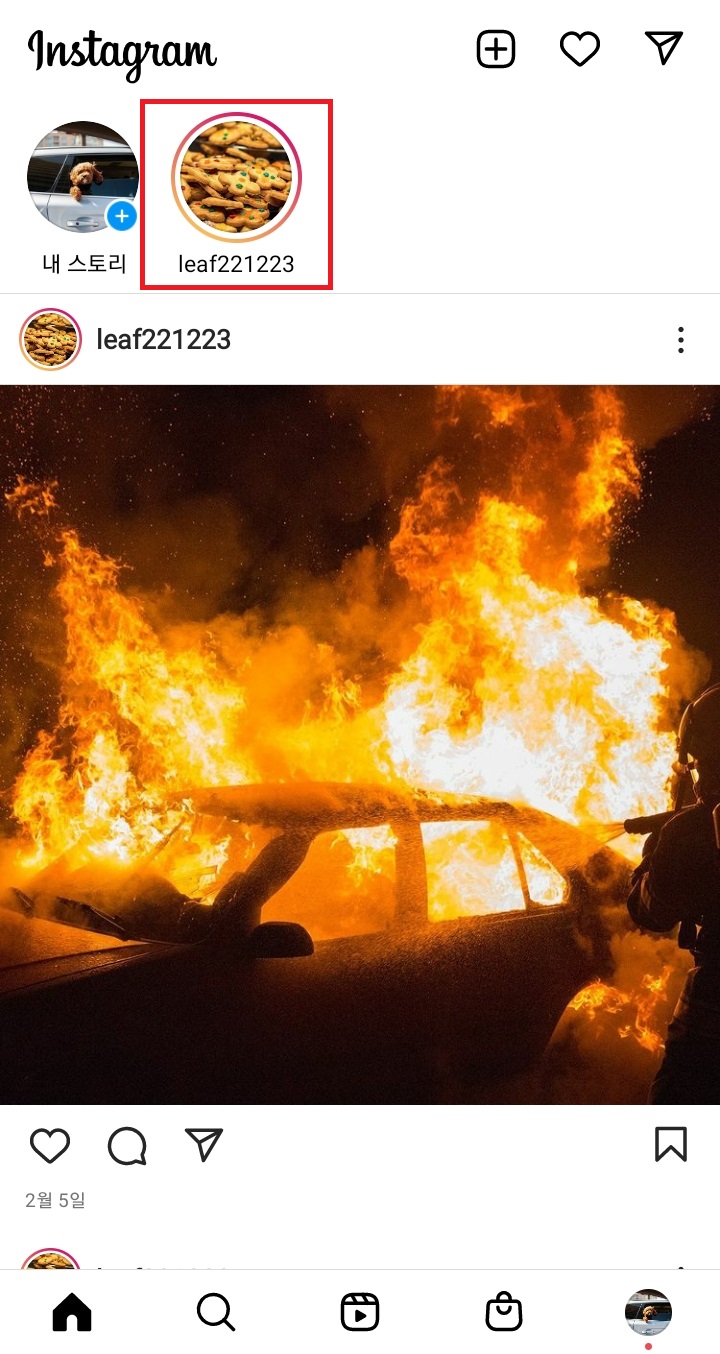 ✓ 인스타그램 부계정으로 로그인하게 되면, 위처럼 본계정에서 올린 스토리가 나타나는데요, 이 스토리를 눌러보았습니다.
