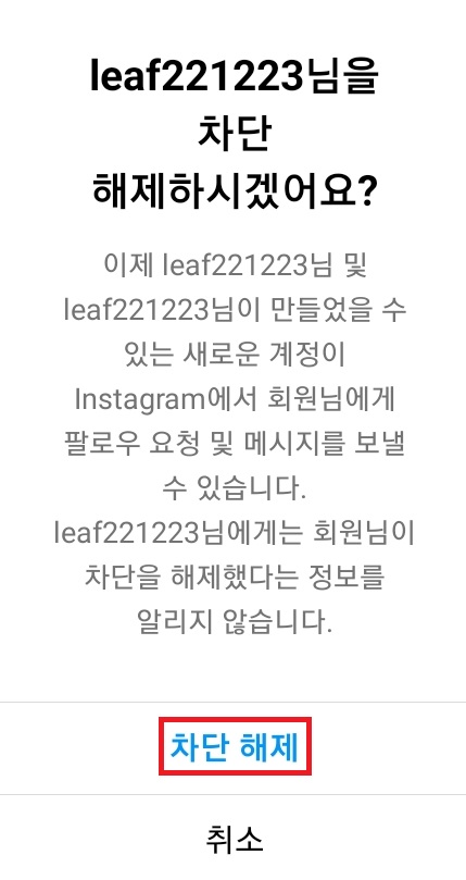 상대방의 인스타 계정 차단 해제