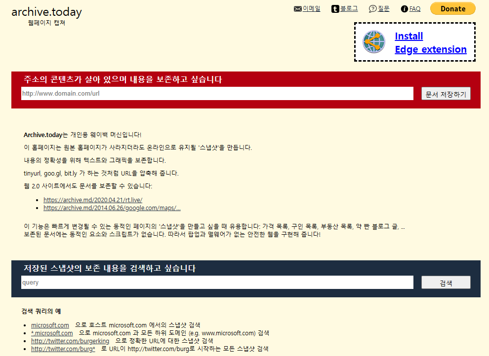 그러면 위와 같이, 일정 로딩시간을 거쳐, 아카이브에 보존이 되는데요, 이렇게 보존이 되기 전에는 인터넷이나 컴퓨터를 종료하시면 안됩니다.