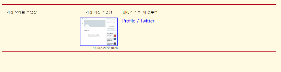 그러면 본인이 저장했던 일시에 해당하는 상대방의 트위터 계정이 나타나게 되는데요, 이를 눌러주시면 됩니다. 그러면 정상적으로 보존된 게시글을 볼 수 있습니다.