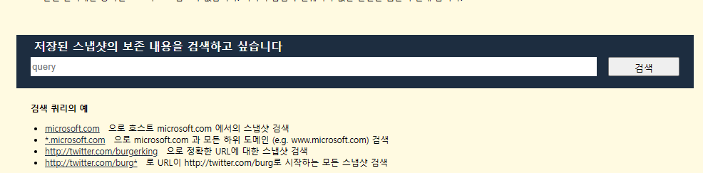 그런 다음, 보존된 트위터 게시글을 보고 싶으시다면, 아래 검은색 검색창에, 상대방의 트위터 주소를 입력하셔서 검색을 눌러주시기만 하면 됩니다.
