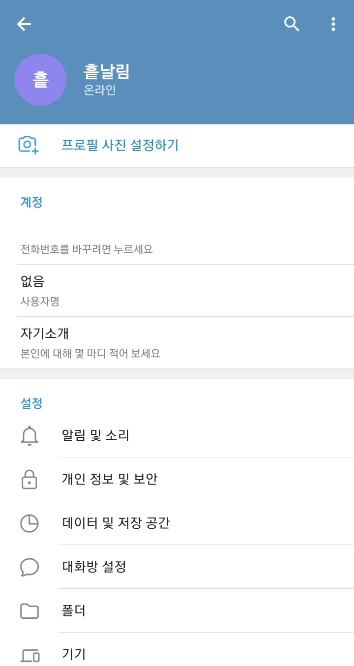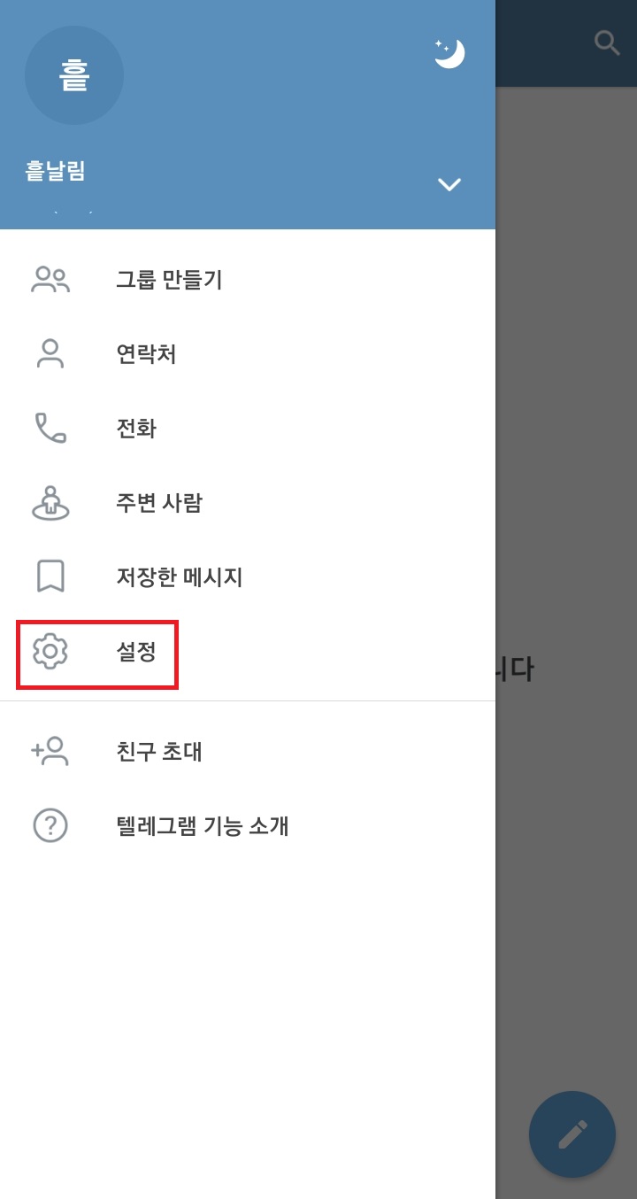 [1] 텔레그램 계정은 컴퓨터와 모바일 앱 모두 계정 삭제가 가능하지만, 아래에서는 모바일 앱을 통해 텔레그램 계정 삭제를 진행하는 과정을 보여 드리도록 하겠습니다.