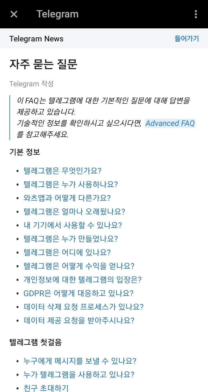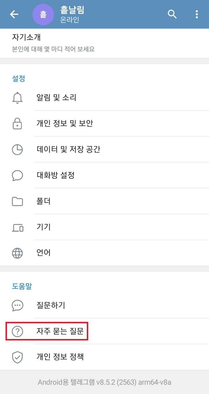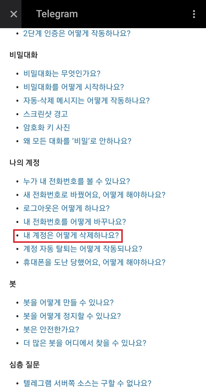 텔레그램 계정 삭제 방법 - 자주 묻는 질문 항목 접속
