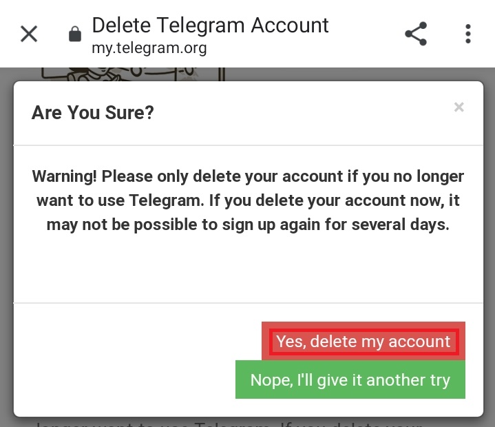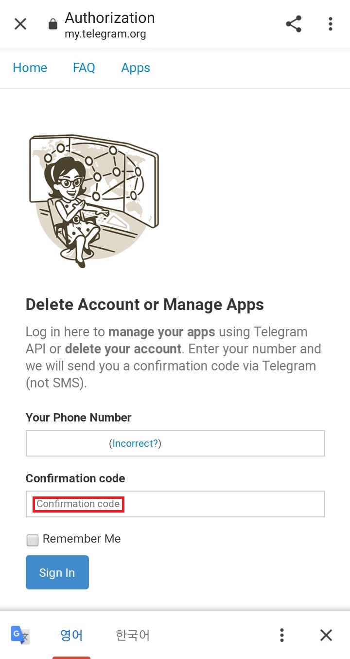 텔레그램 계정 삭제 방법 - 계정 삭제 페이지