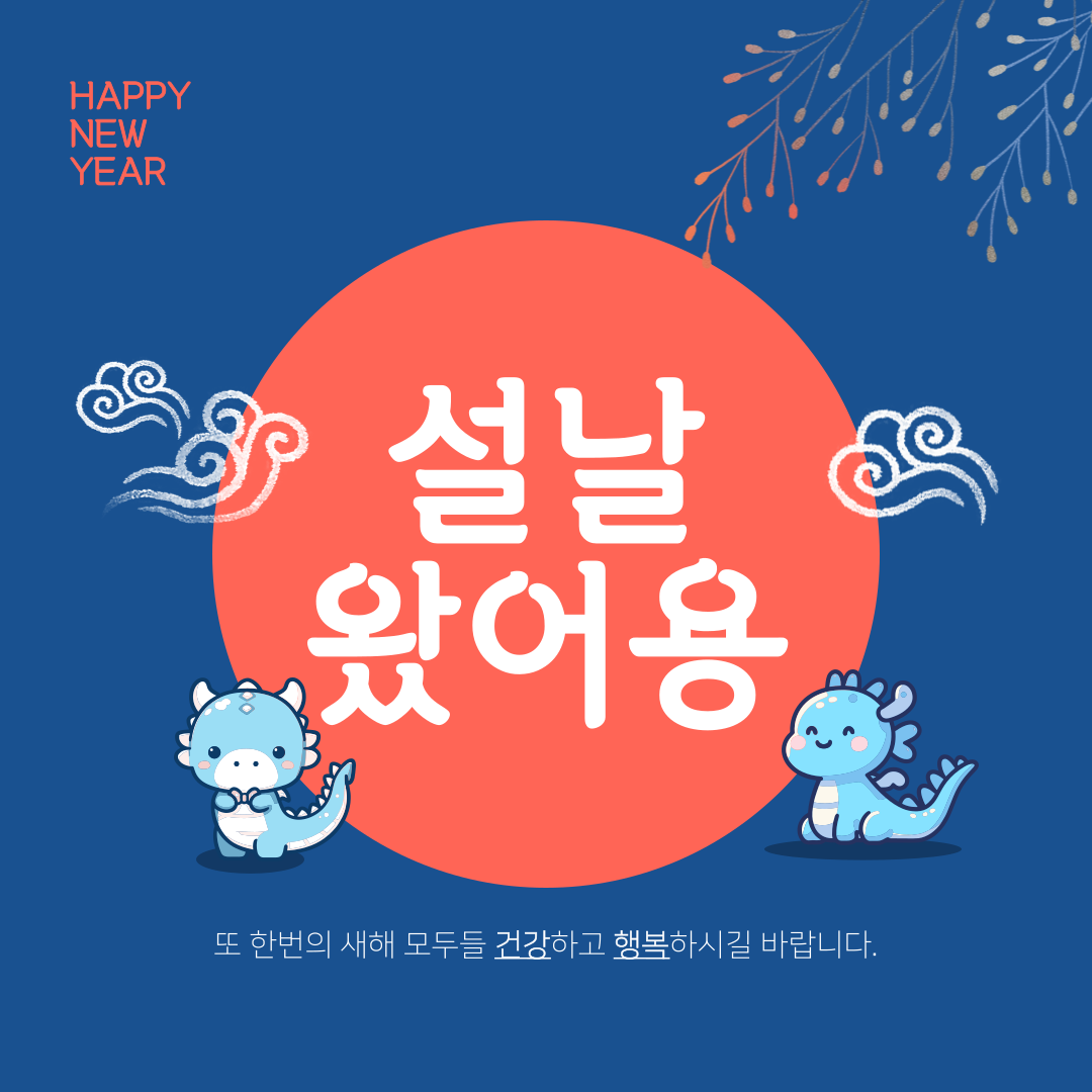 다사다난했던 2023년이 지나가고, 희망찬 2024년 설날이 찾아왔습니다. 갑진년은 푸른 용의 해라고 하는데요, 모두들 지혜롭고 힘찬 용의 기운을 받아 목표에 빠르게 도달하시길 기원합니다.