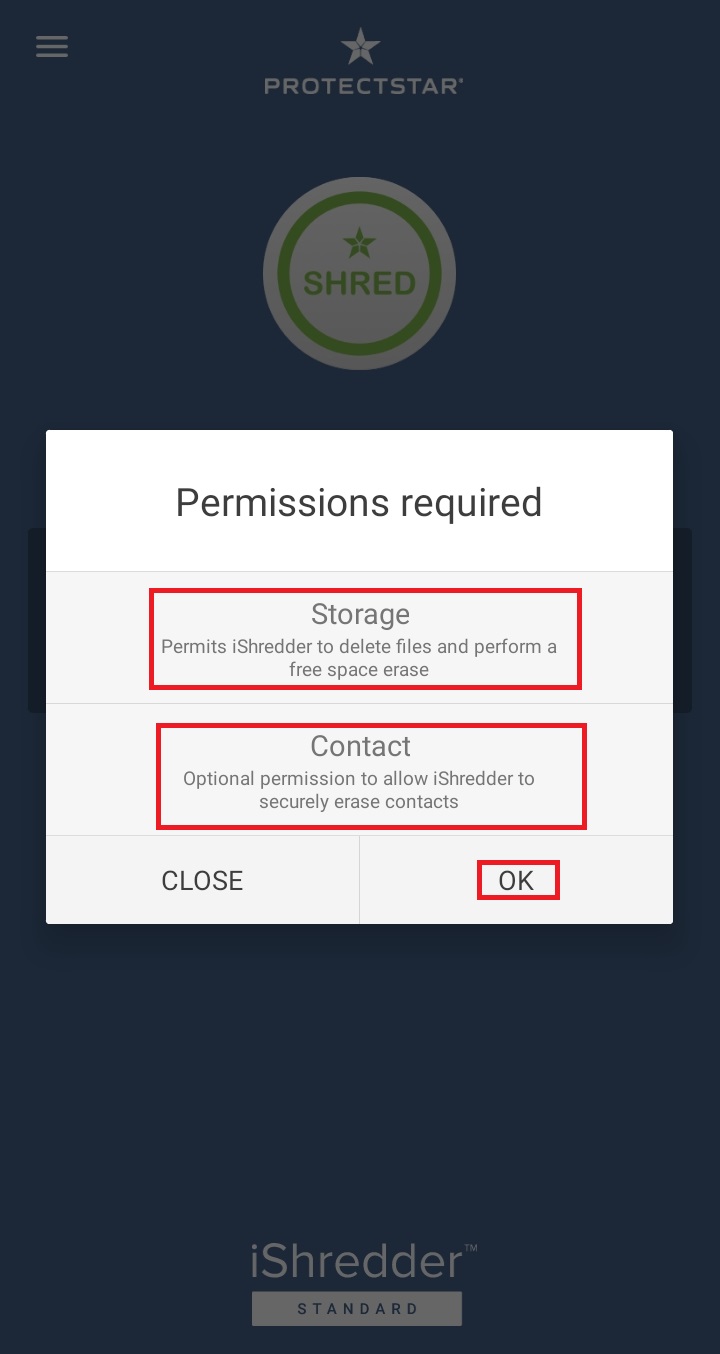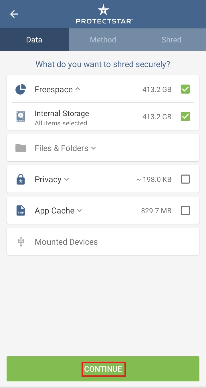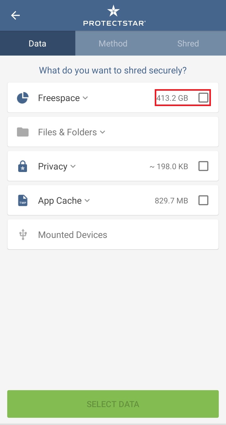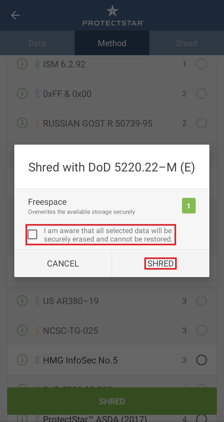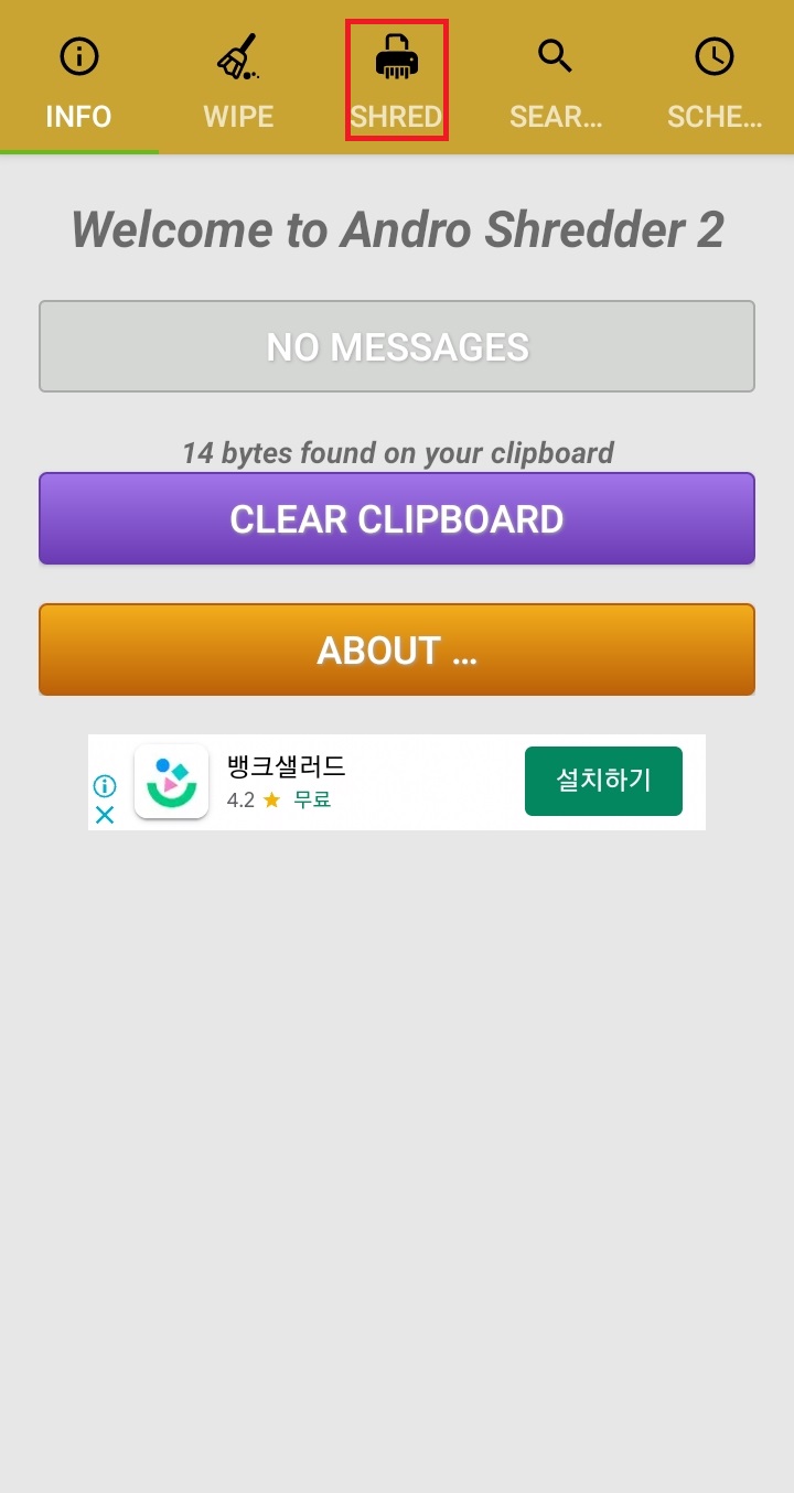 ✓ 스마트폰의 빈 공간을 여러 번 덮어씌우기 위해서는, 상단에 보이시는 5가지 항목 중, SHRED라는 항목을 눌러 들어가 주셔야 합니다.