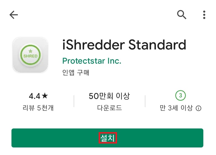 ✓ 두 번째로 설명해드릴, 스마트폰 복구 불가 설정 앱은 바로, 아이슈레더 스탠다드(iShredder Standard)입니다. 이 앱도 안드로 슈레더와 마찬가지로, 스마트폰의 빈 공간을 여러 번 덮어씌워, 복구가 불가능하도록 만드는 앱입니다.