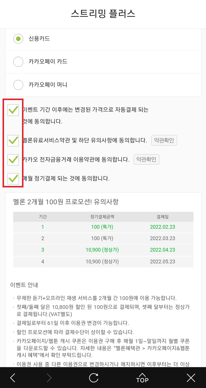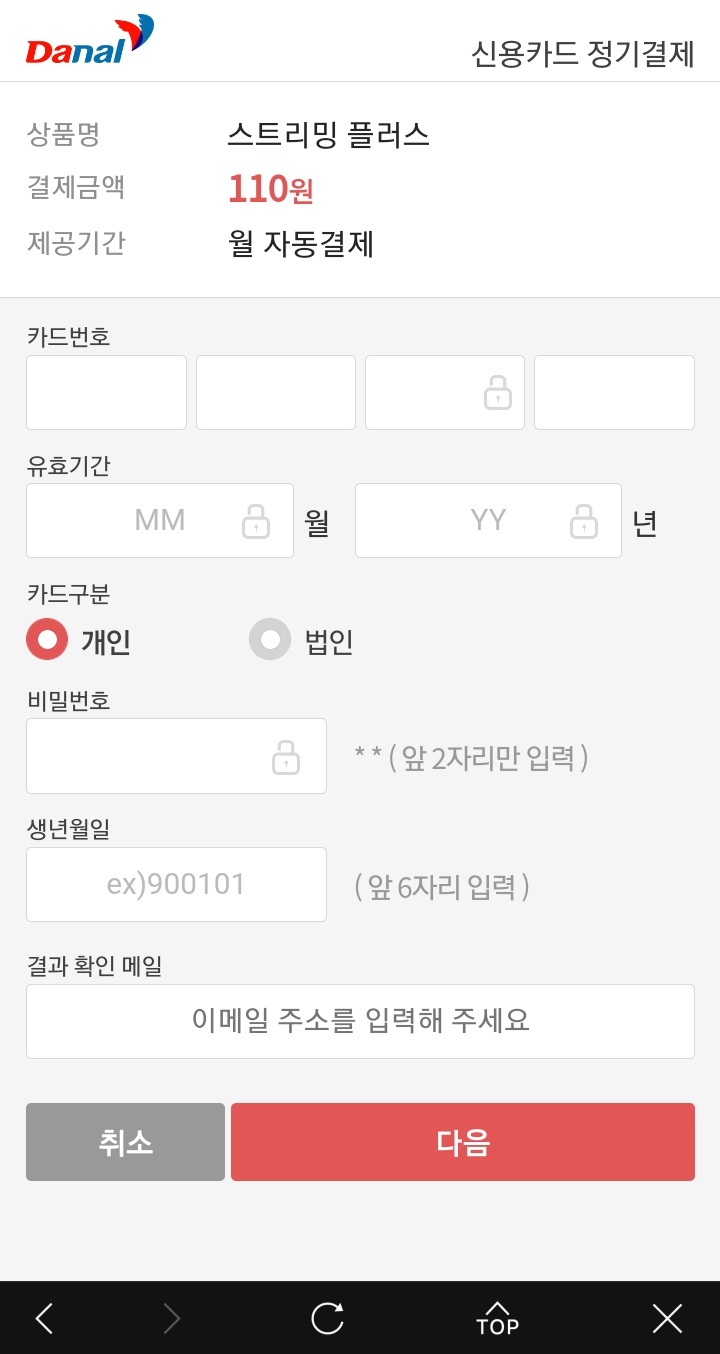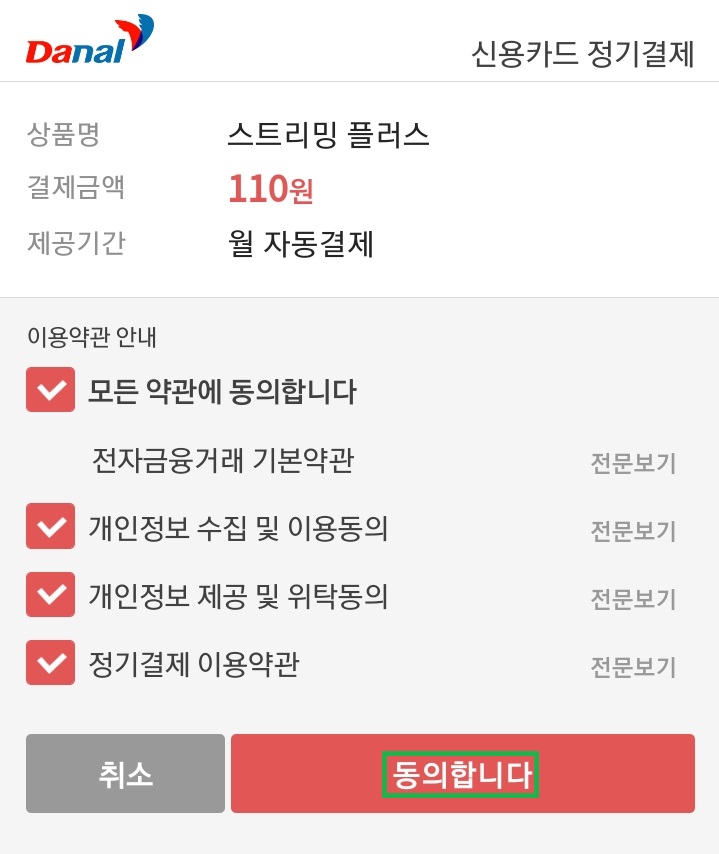 스트리밍 플러스 체크카드 결제