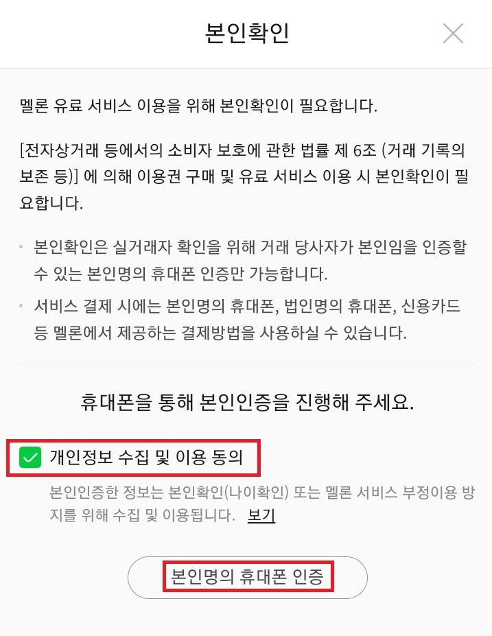 멜론 본인 확인