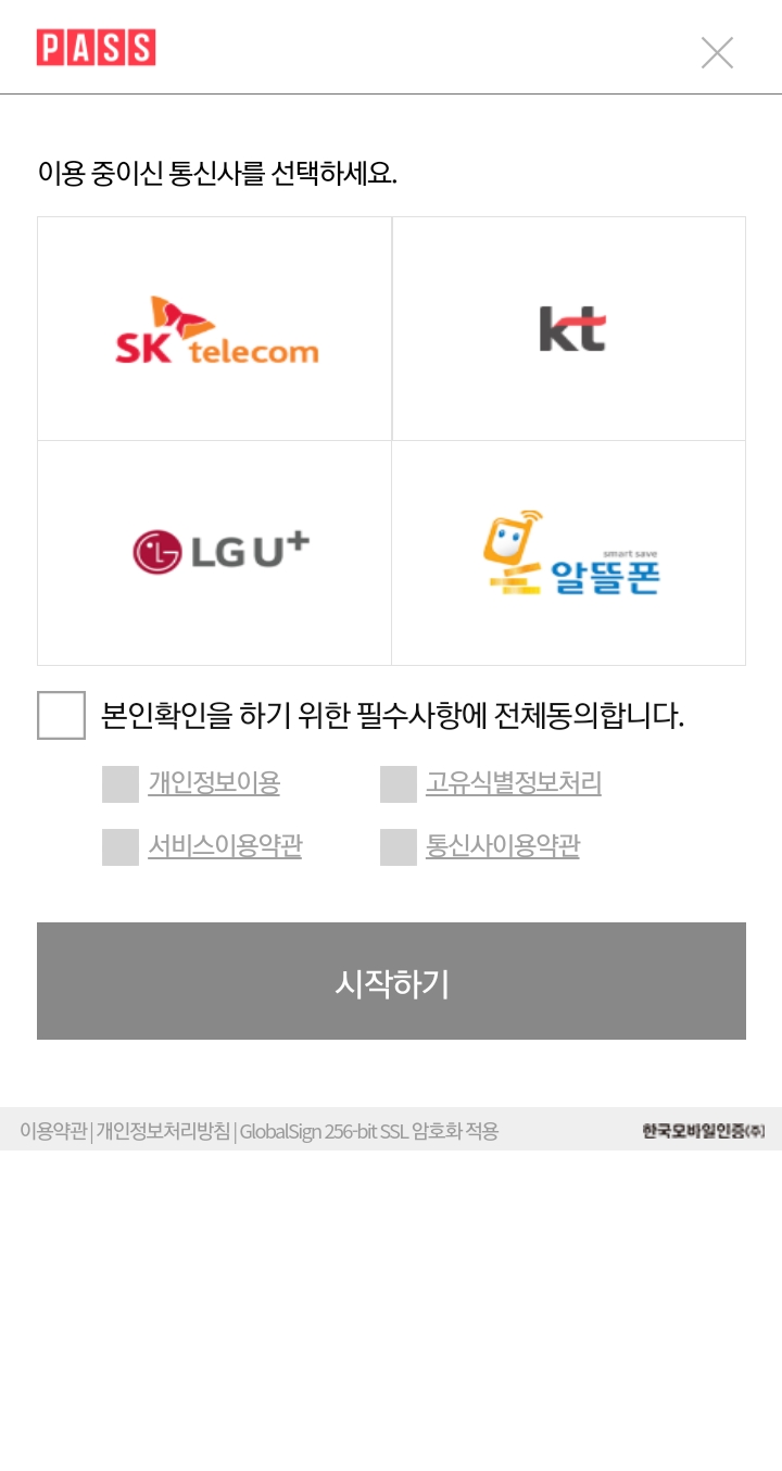 ✓ 확인 버튼을 누르게 되면, 위처럼 본인 명의의 휴대폰 인증을 요구하는 화면이 나오게 되는데요, 여기서 개인정보 수집 및 이용 동의에 체크하신 후, 아래 본인 명의 휴대폰 인증 버튼을 눌러줍니다.