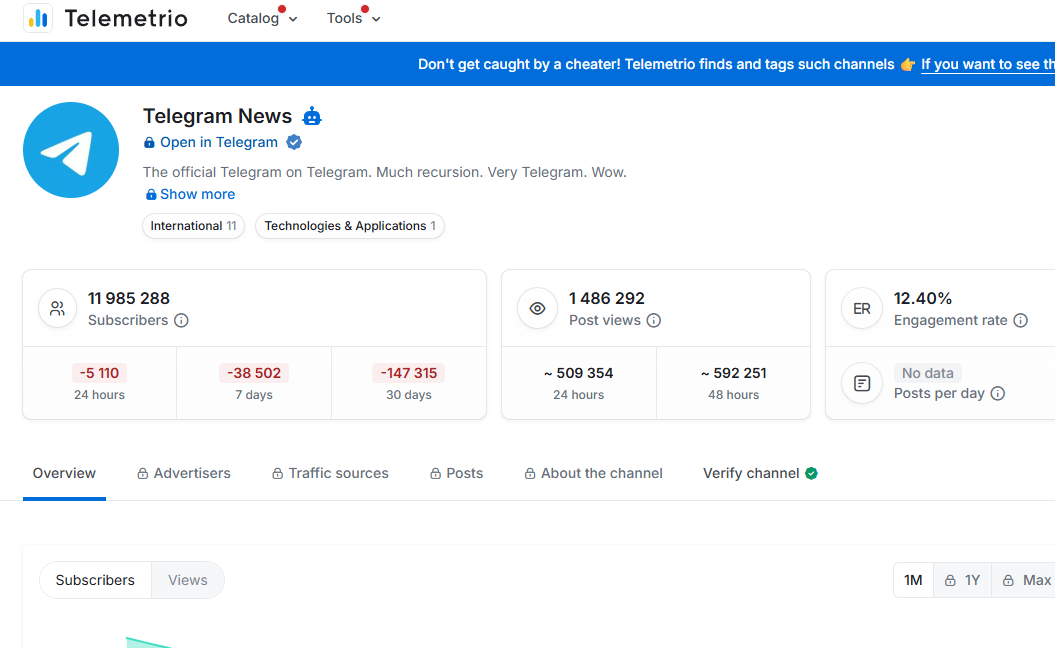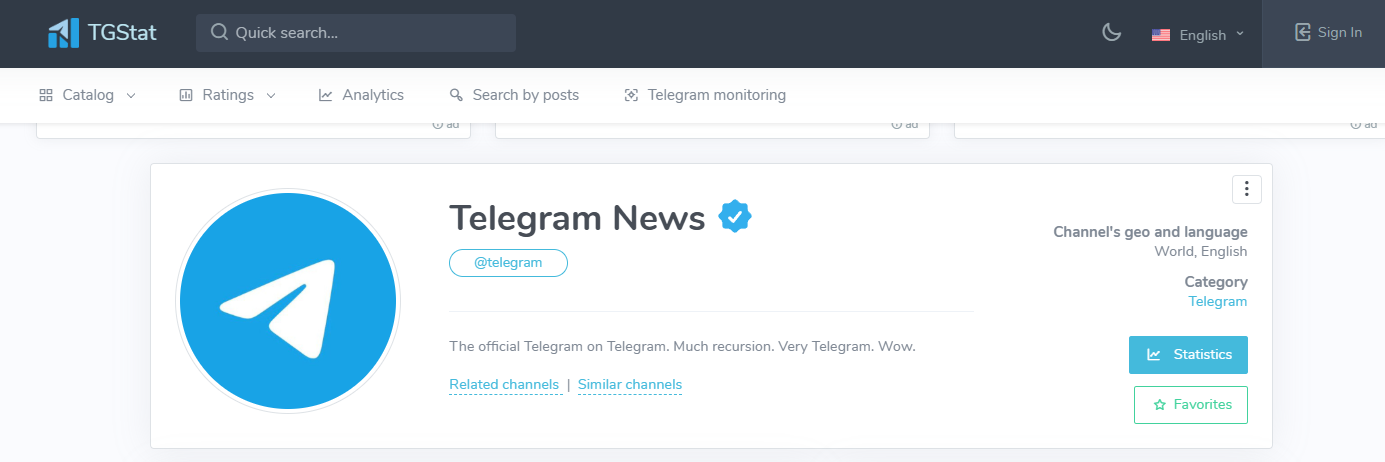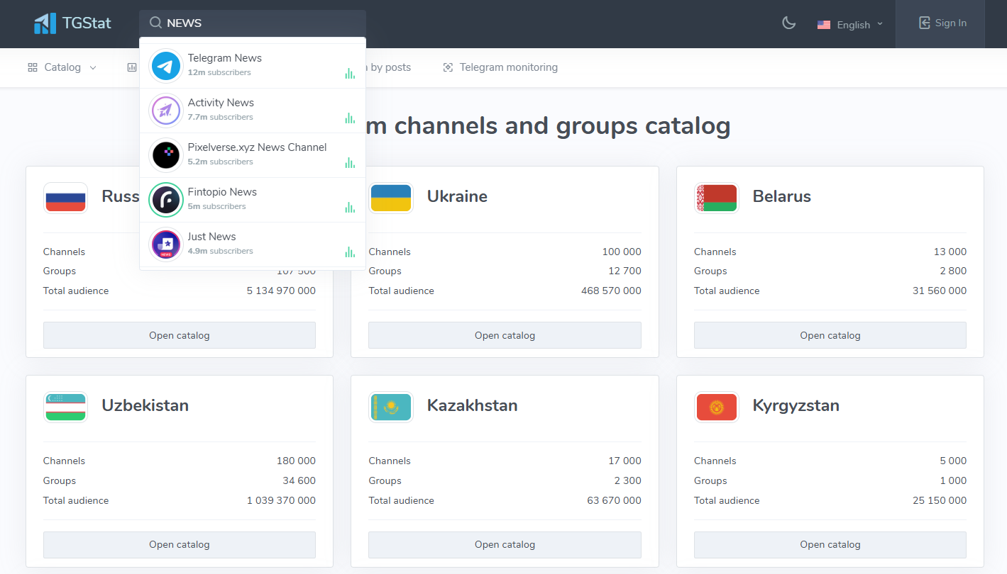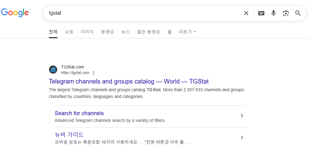 먼저 알려드릴 사이트는, TGStat이라는 사이트입니다. 이는 포털사이트에서 검색하여 접속하실 수 있습니다.