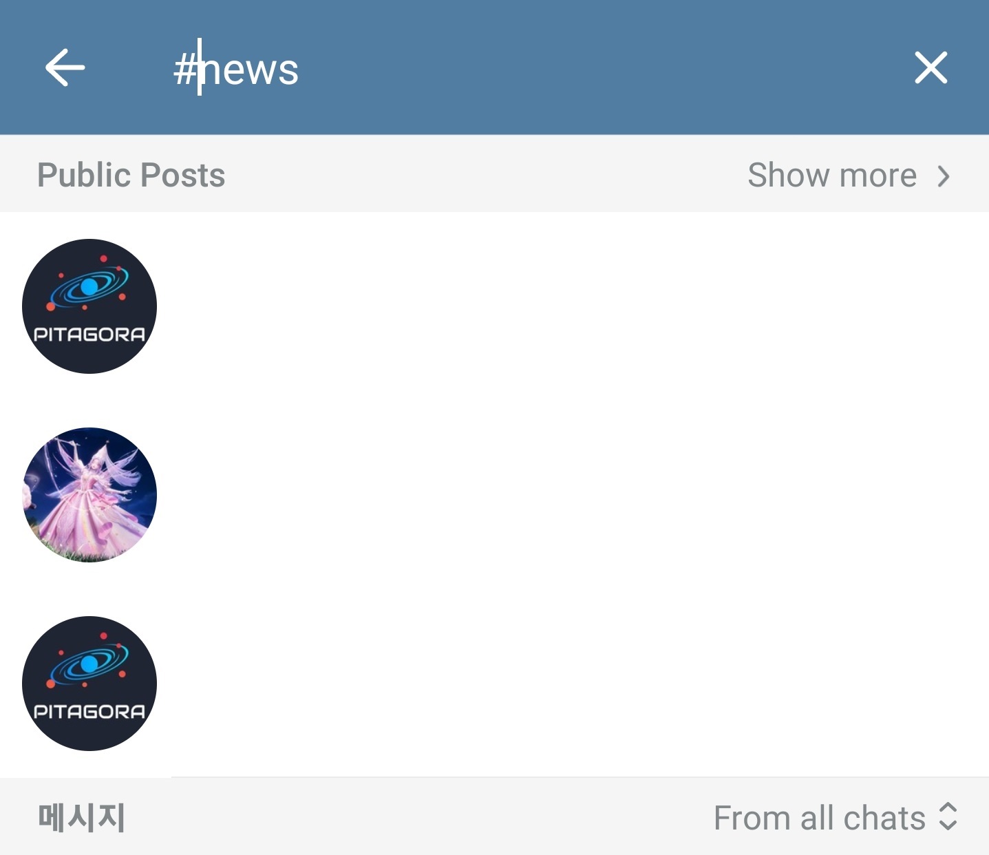 그리고 공개방의 경우, 텔레그램 검색창에 방 이름을 검색하게되면, 결과가 나타나게 됩니다.