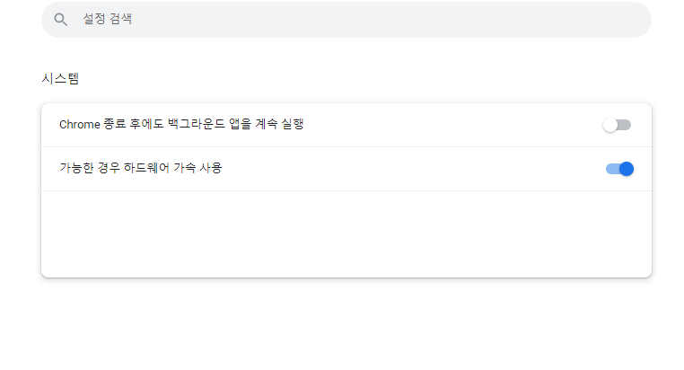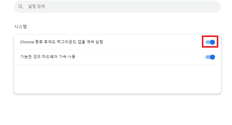 ✓ 시스템을 누르게 되면, 위와 같은 화면이 나오게 되는데요, 여기서, Chrome 종료 후 백그라운드 앱 계속 실행 항목을 해제해주시면 됩니다.