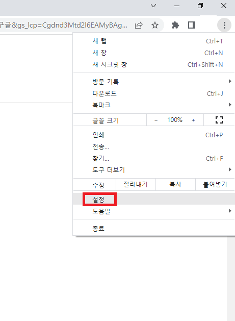 ✓ 우선, 크롬 브라우저 우측 상단에 보이시는, 세로 점 3개 버튼을 눌러줍니다. 그런 다음, 아랫부분에 있는 설정 버튼을 눌러 들어가 줍니다.