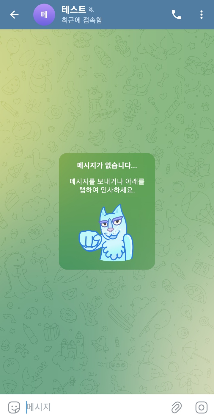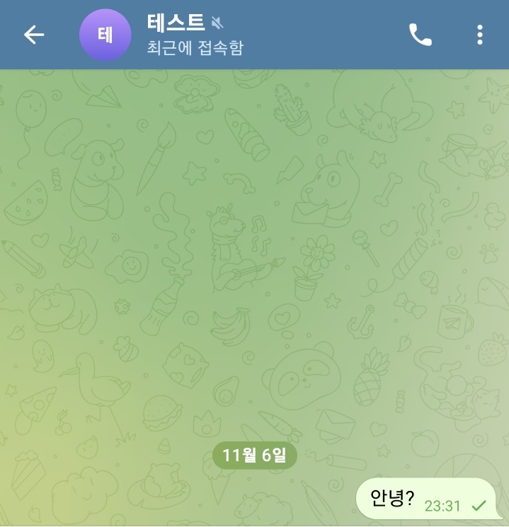 그러면 위와 같이, 상대방의 텔레그램 계정이 추가되어, 메시지를 주고받을 수 있습니다.