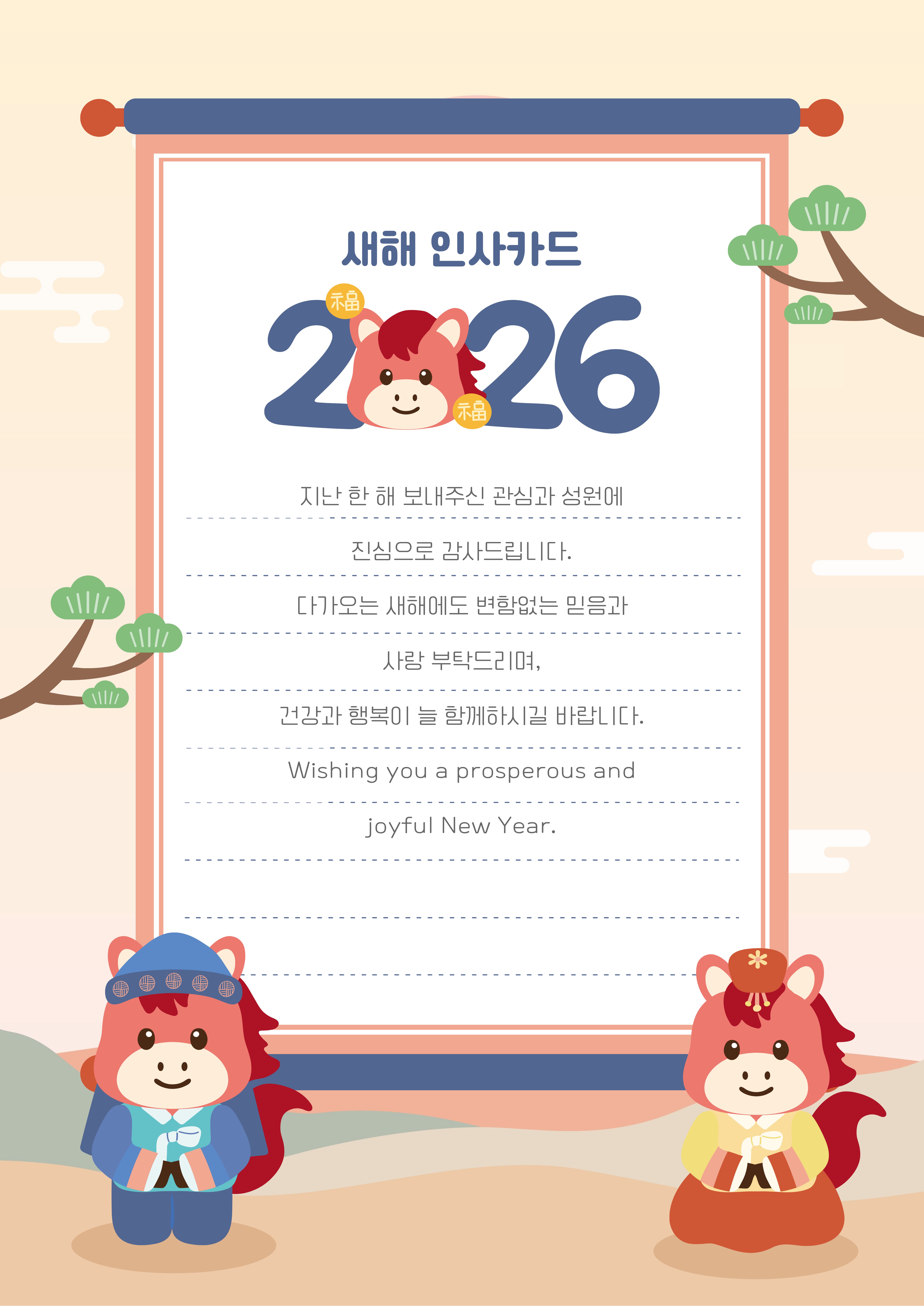 - 2026년에는 말처럼 든든한 기운이 가족 모두에게 함께하시길 바랍니다.