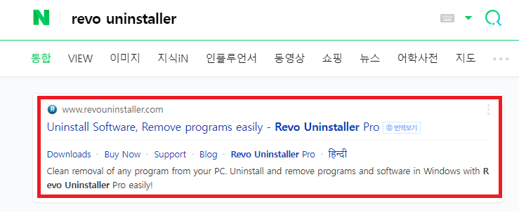 ✓ 레보 언인스톨러는, 네이버나 다음, 구글 등의 검색창에서 Revo Uninstaller라고 검색하시면, 위처럼 사이트가 나타나게 되는데요, 이 사이트를 눌러줍니다.