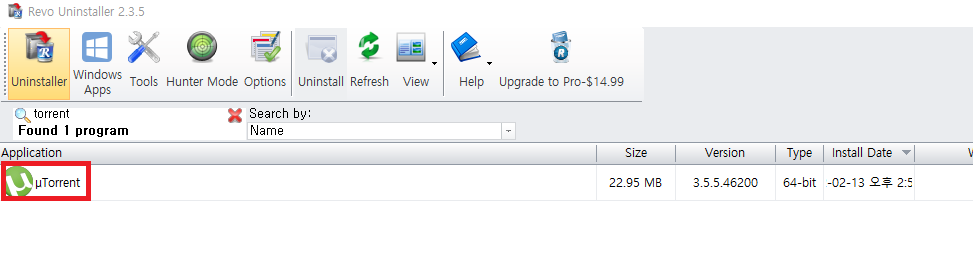 ✓ 저는, 위처럼 Search를 통해, torrent라는 프로그램을 검색하였고, 제가 설치한 토렌트 프로그램이 나타나는 것을 알 수 있었습니다. 이 토렌트 파일을 삭제하시려면, 오른쪽 클릭을 해주시면 됩니다.