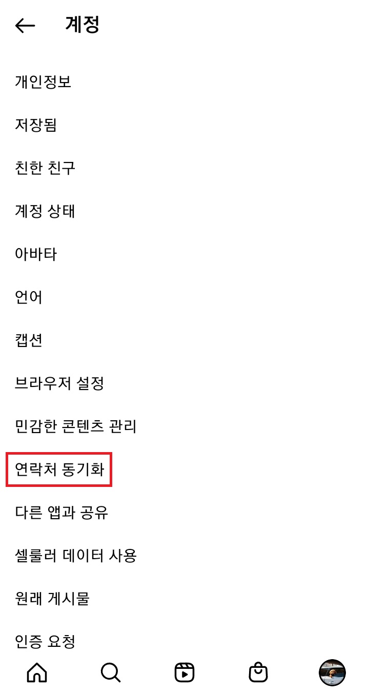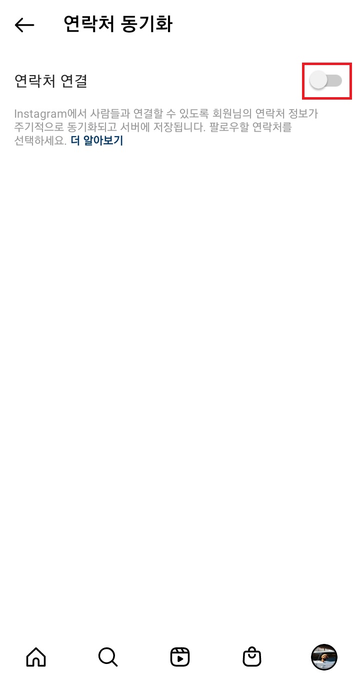 인스타그램 앱 권한 설정으로, 연락처 동기화 해제