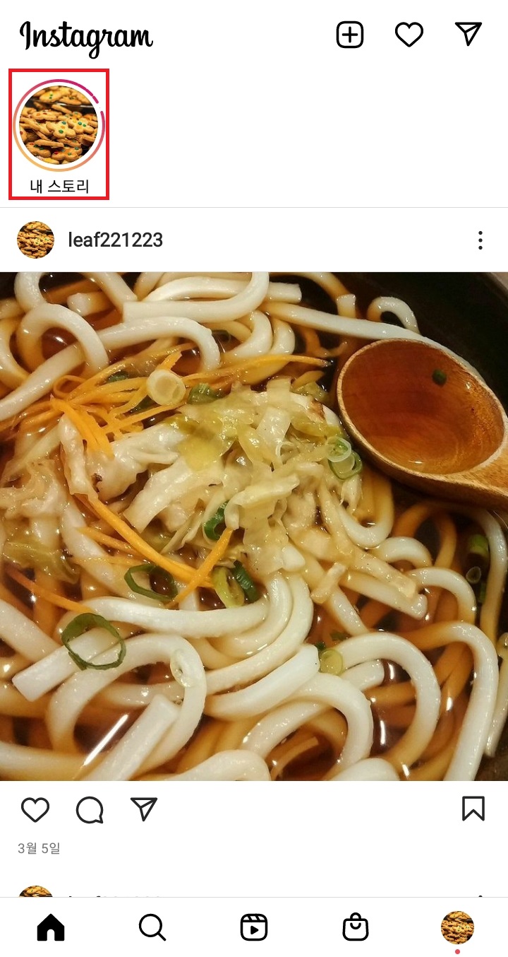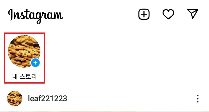 ✓ 인스타그램 스토리에 음악을 넣기 위해서는, 당연하겠지만, 스토리를 하나 작성하셔야 합니다. 인스타그램 스토리는 위처럼 인스타그램 앱을 실행하신 후, 내 스토리를 눌러주시면 됩니다.