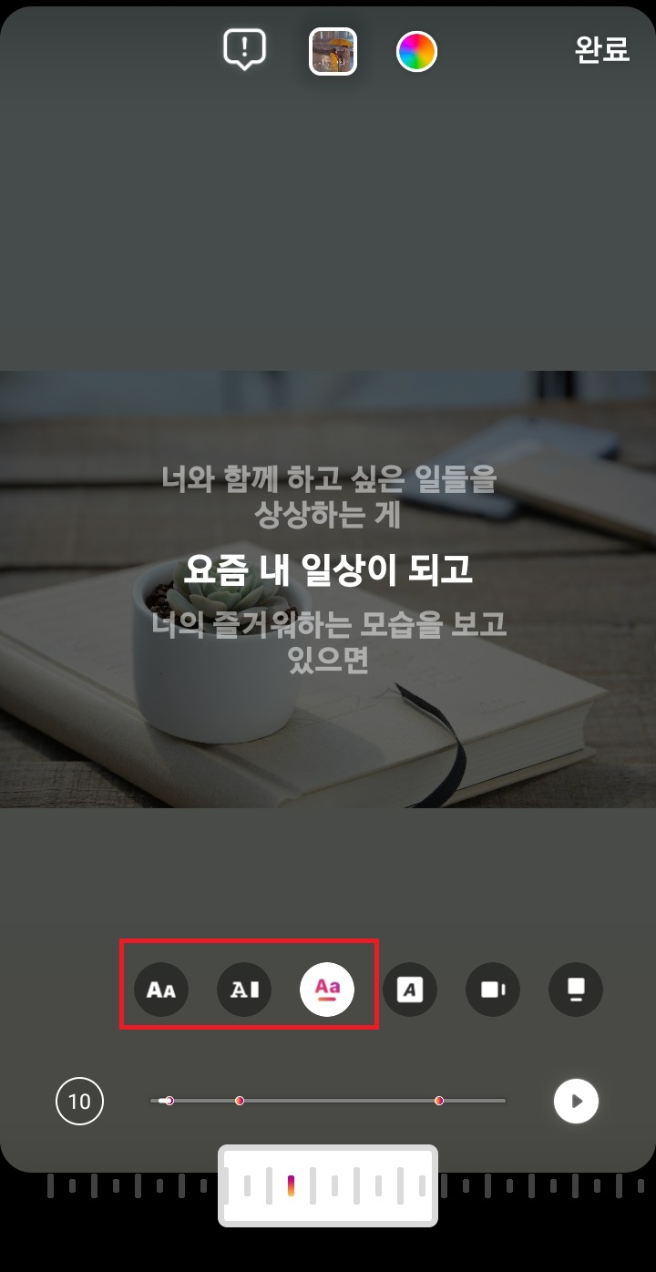 ✓ 그리고 만일, 스토리 중앙에 나오는 가사의 글씨체를 변경하시고 싶다면, 하단에 보이시는 여러 가지 글꼴을 선택하여, 변경해주시면 됩니다.